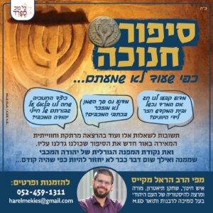 לחנוכה: "חנוכה הסיפור האמיתי" – הרצאה על הסיפור האמיתי והמלא של חנוכה מתוך מקורות היסטורים