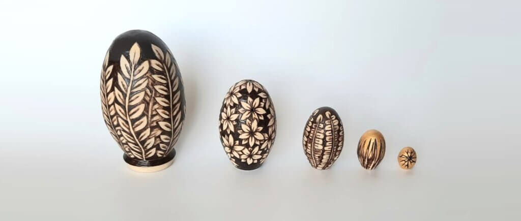 זאת טכניקה בה צורבים על העץ בעזרת עט חשמלי שקצהו חם, וכך מקשטים דוגמאות יפות על העץ.